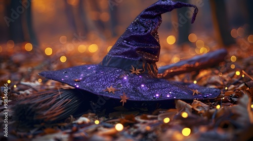 Witchcraft Carnival: A Seasonal Photo Featuring a Cone-Shaped Wizard Hat for Holiday Fun