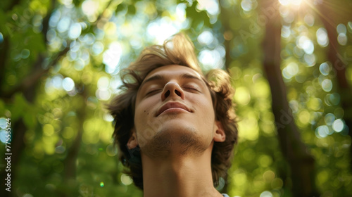 With eyes closed a person breathes deeply inhaling the fresh forest air and exhaling any lingering worries or distractions. . .