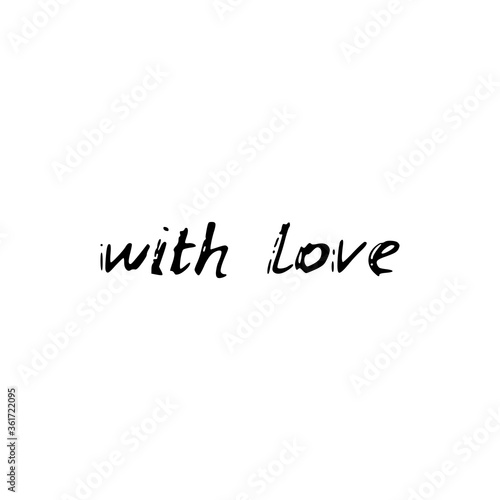 With love. Black text, calligraphy, lettering, doodle by hand isolated on white background Card banner design. Vector