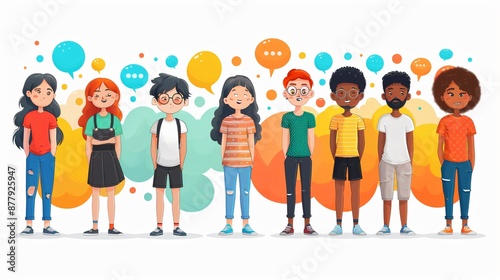 Witness a diverse group of friends having a lively conversation in a vibrant and colorful setting