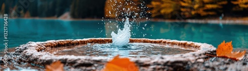 Witness the awe-inspiring beauty of nature's power with an Energetic geyser burst against a volcanic landscape, water and mist rising into the air in this captivating image Explore the raw energy and