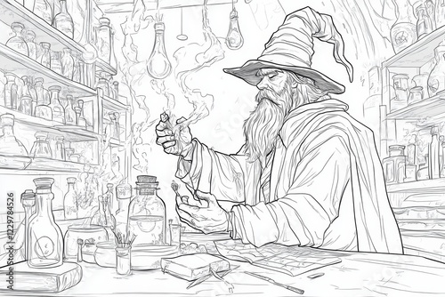 Wizard Conducting Alchemy Experiment in a Magical Laboratory