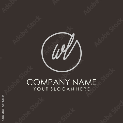 WL initials signature logo. Handwritten vector logo template connected to a circle. Hand drawn Calligraphy lettering Vector illustration.