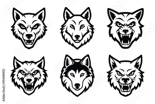 Wolf head Silhouette Bundle in Vector Clip Art Style