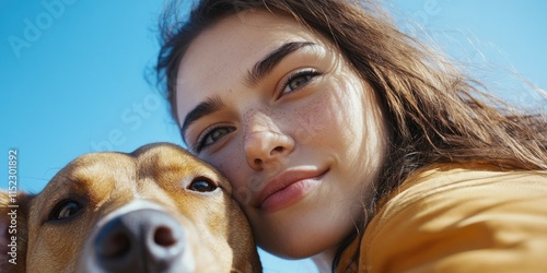 Woman and Dog Outdoor Bonding Moment