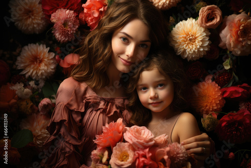 Woman and little girl are posing for picture. This image can be used to capture precious moments between mother and daughter or for family-themed projects.