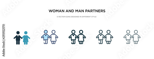 woman and man partners icon in different style vector illustration. two colored and black woman and man partners vector icons designed in filled, outline, line stroke style can be used for web,