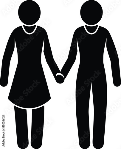 Woman and Man Silhouette Holding Hands on a Transparent Background Icon