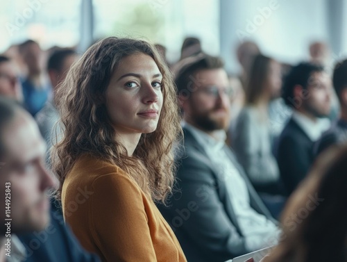 Woman attentively listening in conference setting