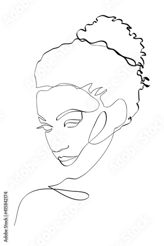Woman beauty. Abstract african amerivcan female portrait, continuous line style. Minimalist fashion design, quick sketch, vector illustration for t-shirt, prints, covers, posters, logo, tattoo