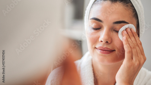 Woman cleaning skin with cotton pad