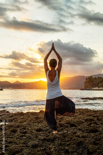 Woman doing yoga by the sea