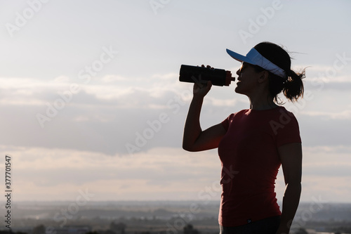 woman drinking water from a bottle against the light
