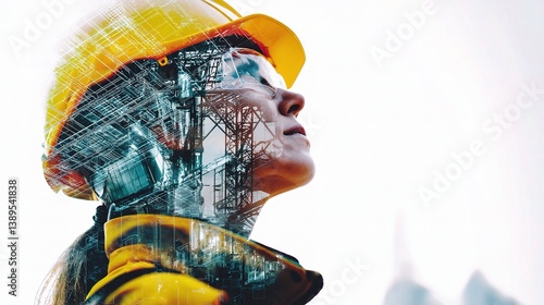 Woman Engineer Portrait with Double Exposure Effect and Construction Theme