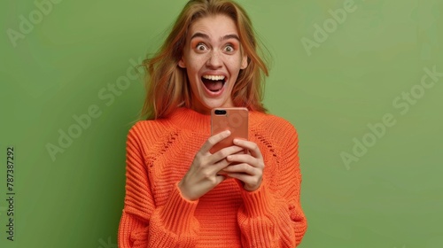 Woman Excited by Smartphone News