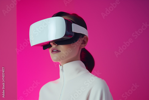 Woman Experiencing Virtual Reality with Smart Glasses, Future Technology Concept
