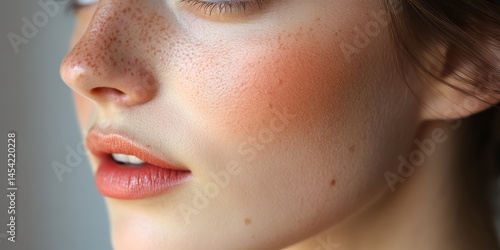 Woman Face Detail with Freckles and Pink Lips for Skincare and Beauty Concept