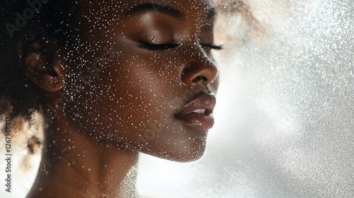 Woman, face, spray, beauty, studio, close-up, skincare, product