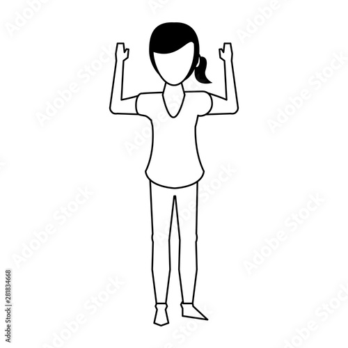 woman faceless avatar body cartoon in black and white