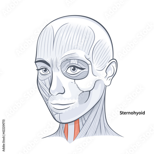 Woman facial anatomy sternohyoid neck muscle vector illustration