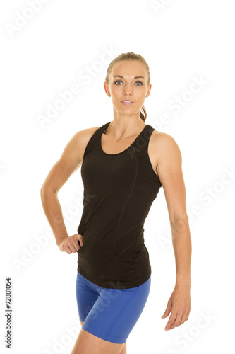woman fitness black tank top pose look close