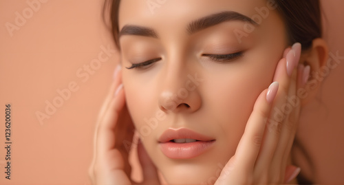 Woman Gently Touching Face, Soft Skin, Natural Beauty