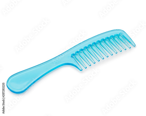 woman hair comb isolated on white background. Blue hairbrush isolated on white background.