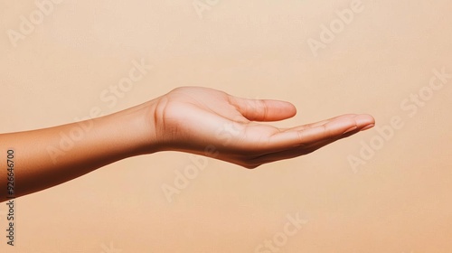 Woman hand gesture. Symbol of giving or receiving. Golden brown color tone.