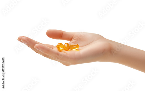 Woman hand holding omega 3 fish oil capsules on transparent background