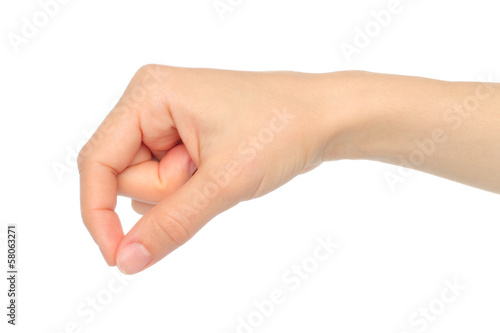 Woman hand on white backround .
