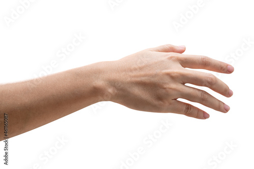 Woman hand reach and ready to help or receive. Gesture isolated on white background.