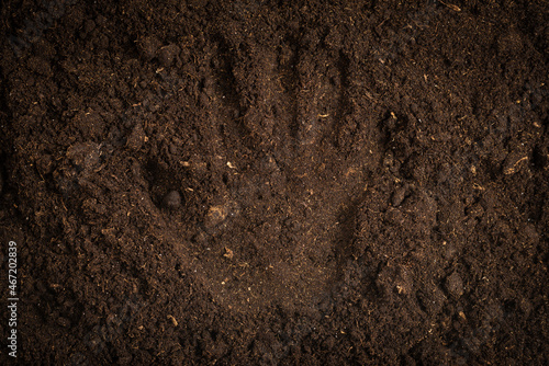 Woman hand trace on a ground.