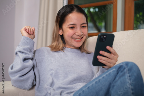 woman hand using her smartphone, chatting with someone or scrolling on her phone while relaxing. online communication technology concept.
