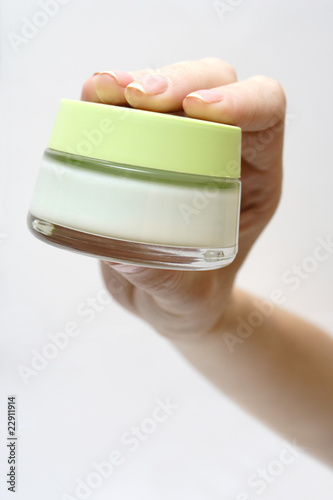 woman hand with cream pot