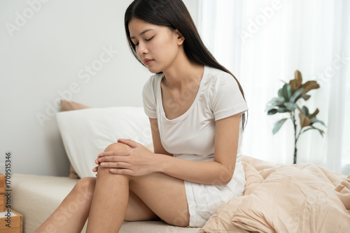 woman having knee injury due to ligament inflammation, knee pain due to exercise, massage, muscle relaxation, rheumatoid arthritis, gait disturbance, rheumatoid arthritis