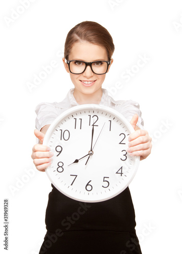 woman holding big clock