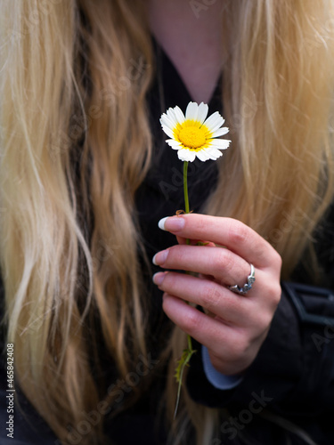 woman holding daisy