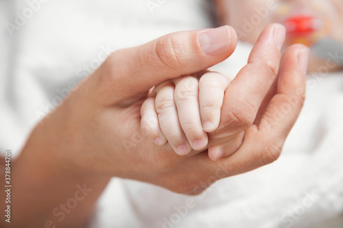 Woman holding her baby's hand