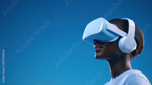 Woman immersed in virtual reality, exploring the metaverse with advanced vr headset technology