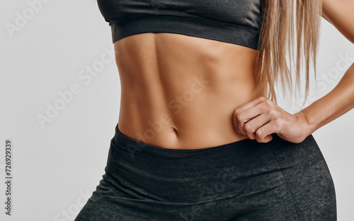 Woman in Active Sportswear Abs Midsection Close up