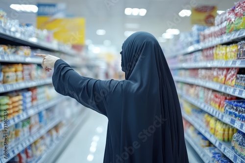 Woman in Black Abaya Shopping in a Supermarket Aisle