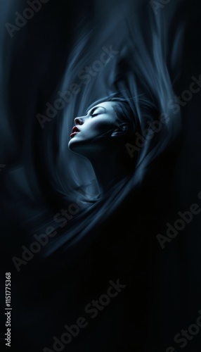 Woman in Dark Artistic Fabric Flowing Surreal Portrait