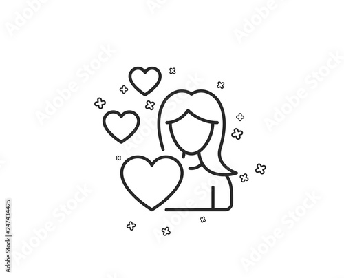 Woman in Love line icon. Heart sign. Valentines day symbol. Geometric shapes. Random cross elements. Linear Love icon design. Vector