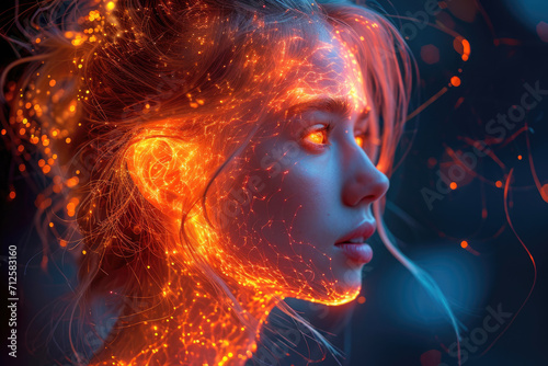 woman in red light. "Brainpower Beam: Radiant Intellect"