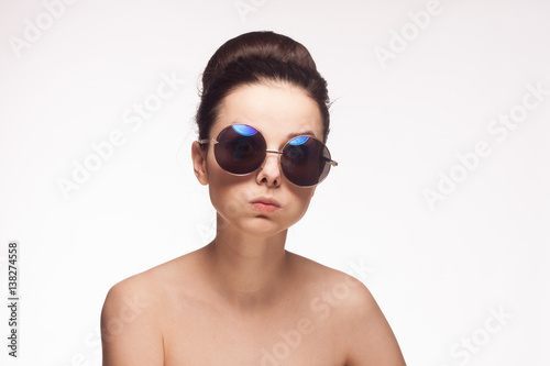 woman in sunglasses, pouting lips, cheeks