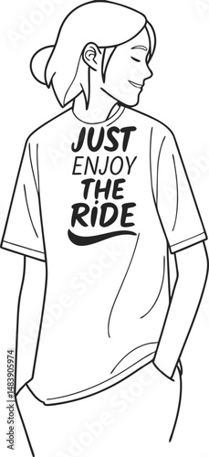Woman in T-shirt with 'Just Enjoy the Ride' Text