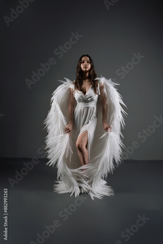 Woman in White Dress With Angel Wings