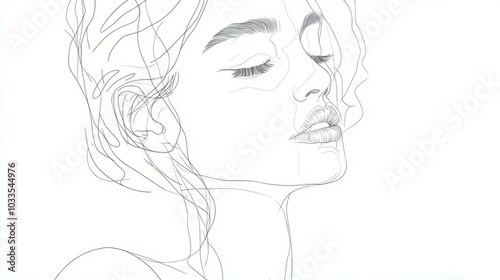 Woman line art portrait. Line art sketch of a woman with eyes closed, symbolizing peace, tranquility, and serenity.