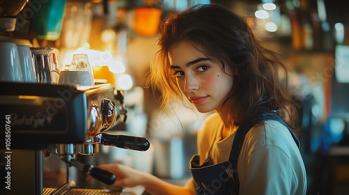 Woman Making Coffee in a Modern Coffee Shop Studio, Morning Routine, European Beauty