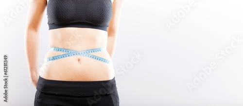 Woman measuring her waist, weight loss concept